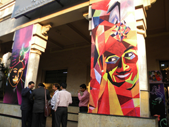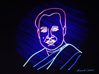 Regarding dedication to his father, Manick said on stage, “I am here not to talk about the great magician, but rather to share some of the rare moments in the relationship between a father and son. I have been an artist all my life - starting from being a painter, an animator, lighting designer, to being a laserist and applying all of that on stage. The source of all these go to the back stage of my father’s magic shows, where I did the art work and lighting design. He was the man who kindled my simultaneous interest in art and science, and then mix the two on stage ”. Manick then performed some of P.C. Sorcar’s popular magic items such as the “Birth of Pearl” and “Water of India”, bringing their presentation to the 21st Century with the application of the cutting-edge technology of laser and other type of intelligent lighting – to the great appreciation of the enthusiastic audience. The show also included two popular animation of Manick Sorcar, “The Sage and the Mouse” (Gold Medal, New York International Film Festival) and “Ekushe Aine” (Bronze Plaque, Columbus International Film Festival) to the delight of the children at the audience. A unique art exhibition on the Great Sorcar was displayed at the lobby, which was filled with the art work of Manick in a variety of media. It included portraits that he had drawn as a teenager to the latest series of laser-art, seed-art, tile-collage, etc. showing P. C. Sorcar at different ages. The portraits were promptly collected by his admirers and art-collectors.