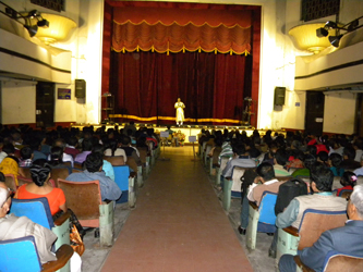 Exterior and inside the Mahajati Sadan, Calcutta. People from all over came to watch