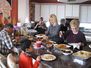 . (Left) A group photo with some of the guests, (Right) At the lunch serving,