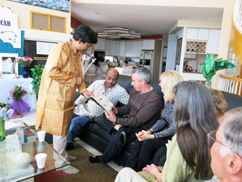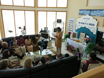 On this auspicious day of the birth centenary of the Great Sorcar, his eldest son Manick Sorcar and his family paid a special tribute to the great man by inviting friends, family members and magic-enthusiasts at their residence in Denver, Colorado. The guests started gathering around 11 am in the beautiful morning. Manick and his wife Shikha read verses from the Holy Gita, the sacred book of Hindu religion and lighted the lamp and incense.